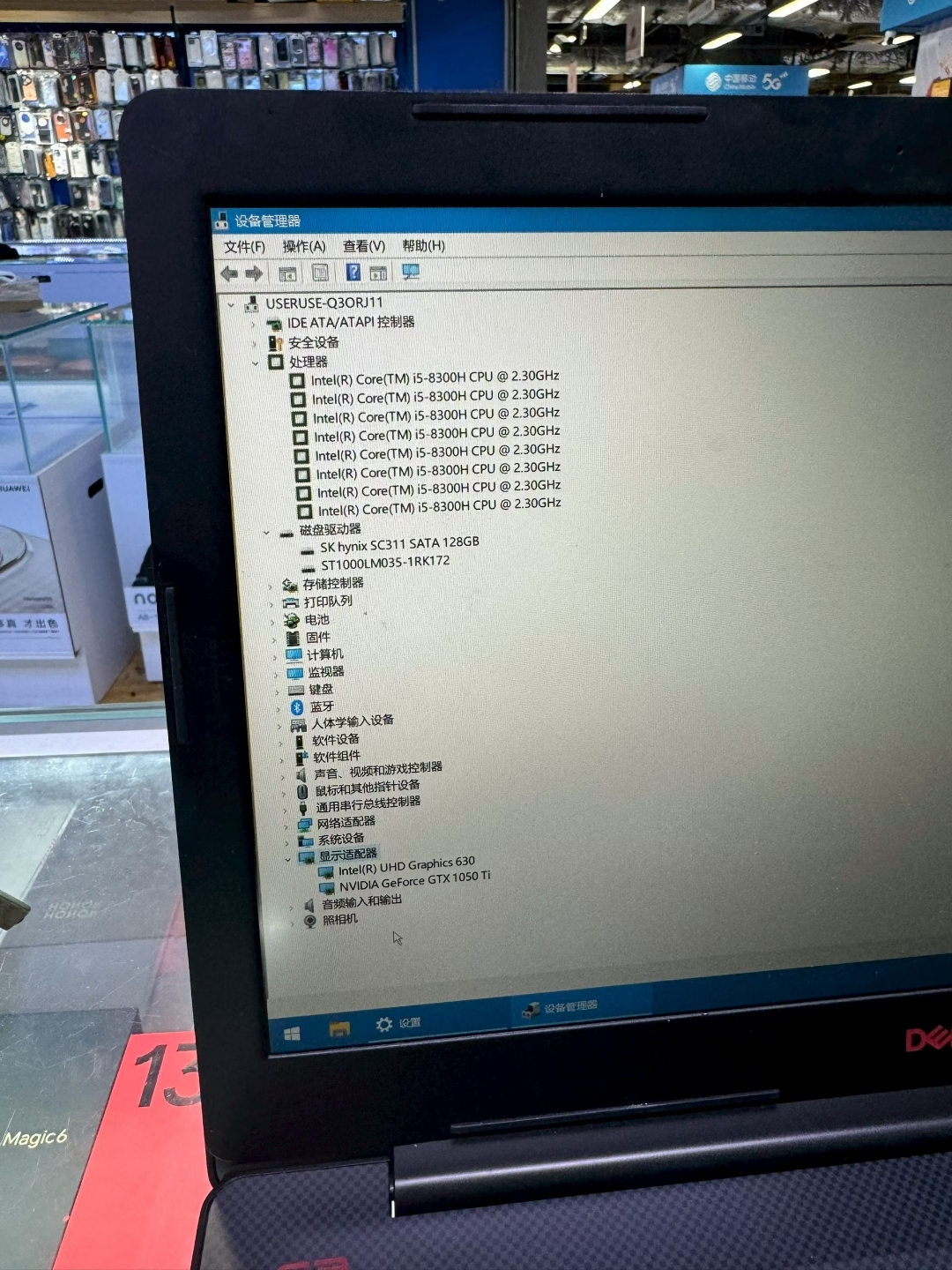 戴尔游戏本 i5-8 8+128+1t 1050ti 4g独显成色好 电池...